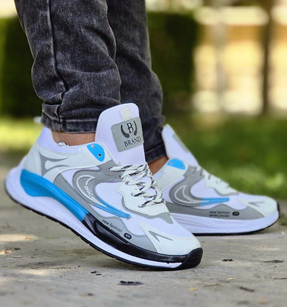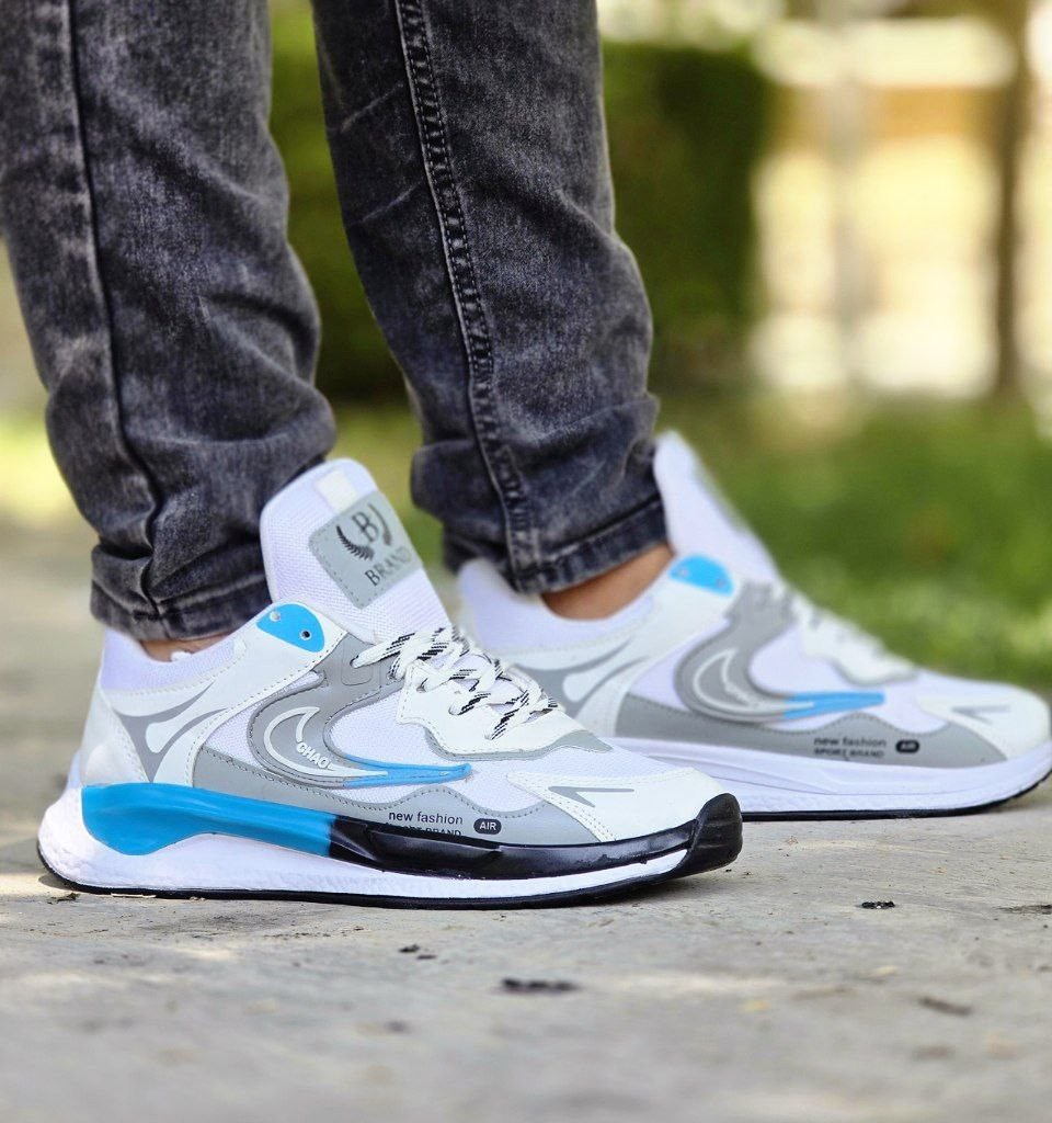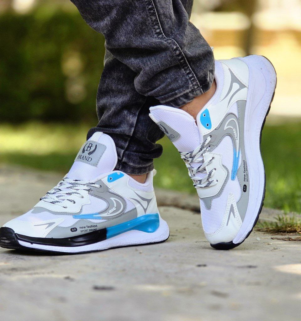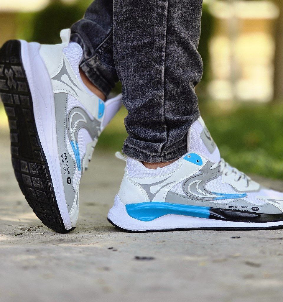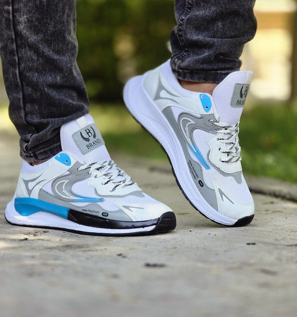 تخفیف فوق العاده کفش اسپرت مردانه پسرانه مدل نایک راحت و زیبا رنگ سفید طوسی آبی باارسال رایگان