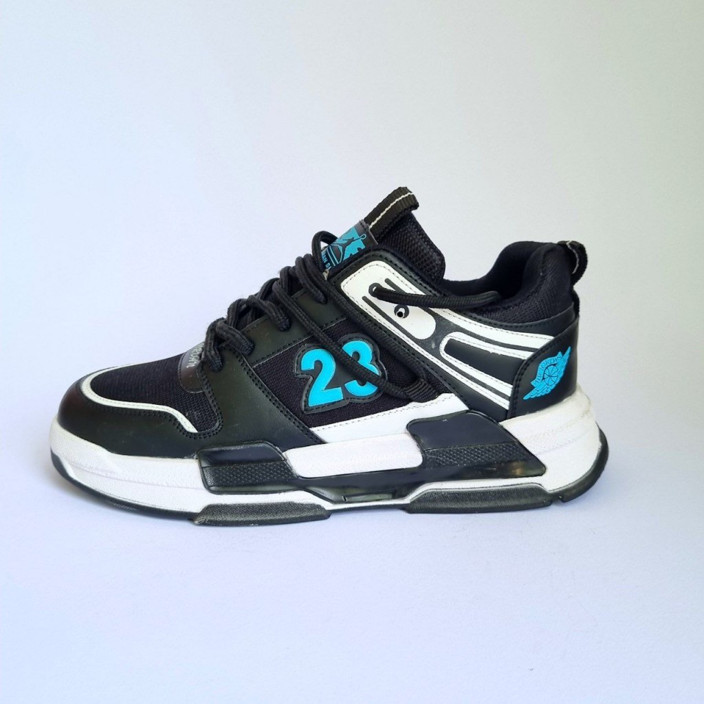 فروش باکیفیت کفش اسپرت مردانه پسرانه مدل جردن 23 رنگ مشکی سفید آبی بی نظیر با ارسال رایگان