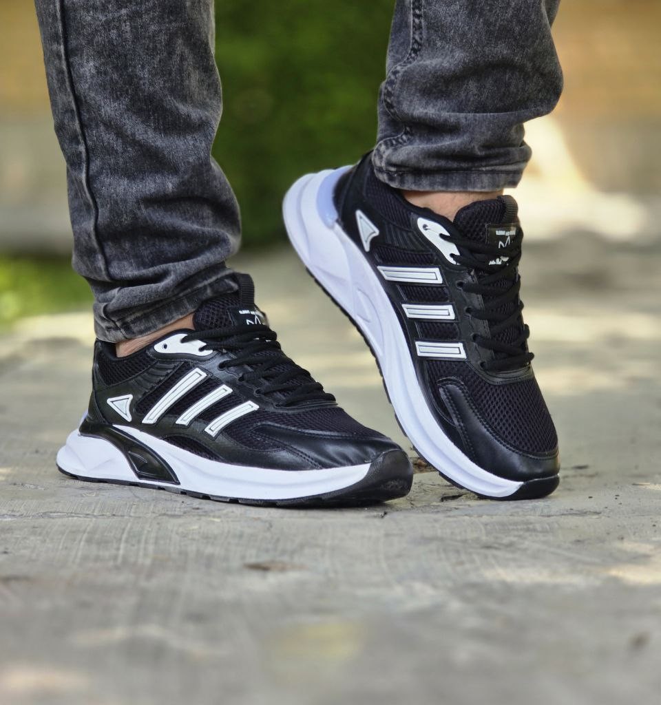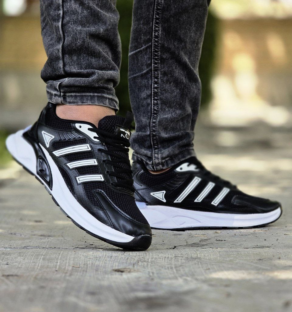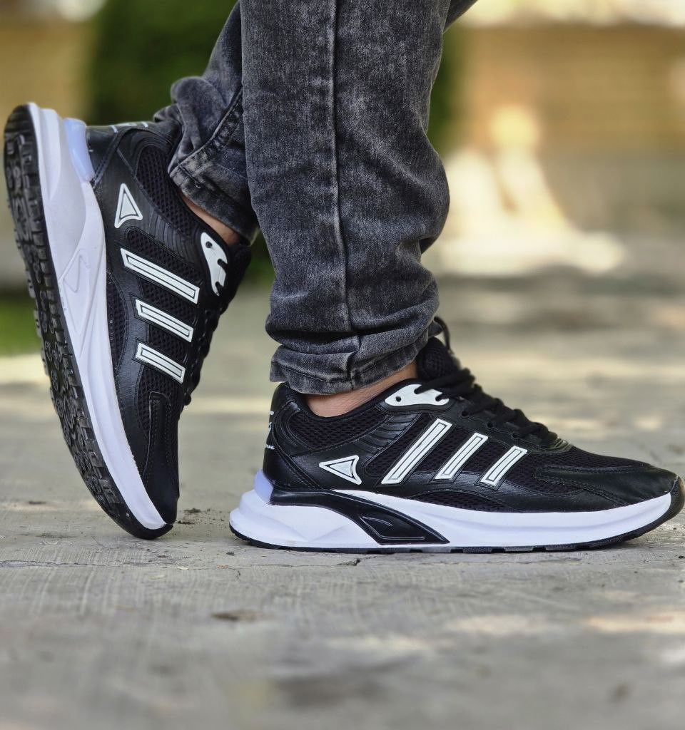 حراج شگفت انگیز کفش اسپرت مردانه پسرانه مدل ادیداس شیک و پرفروش رنگ مشکی سفید ارسال رایگان