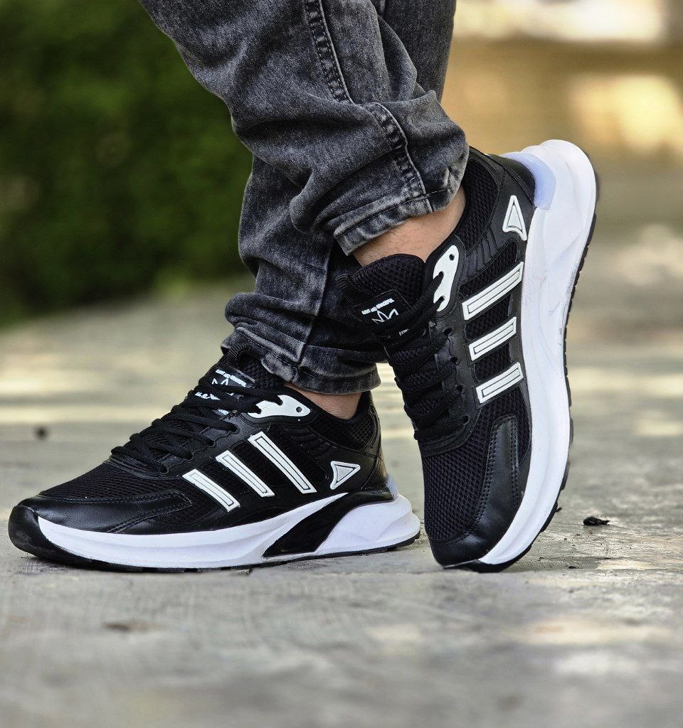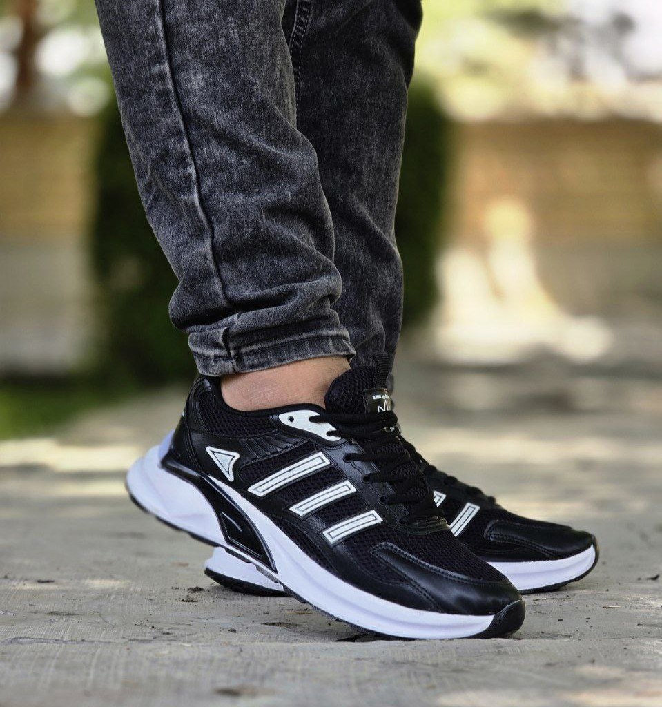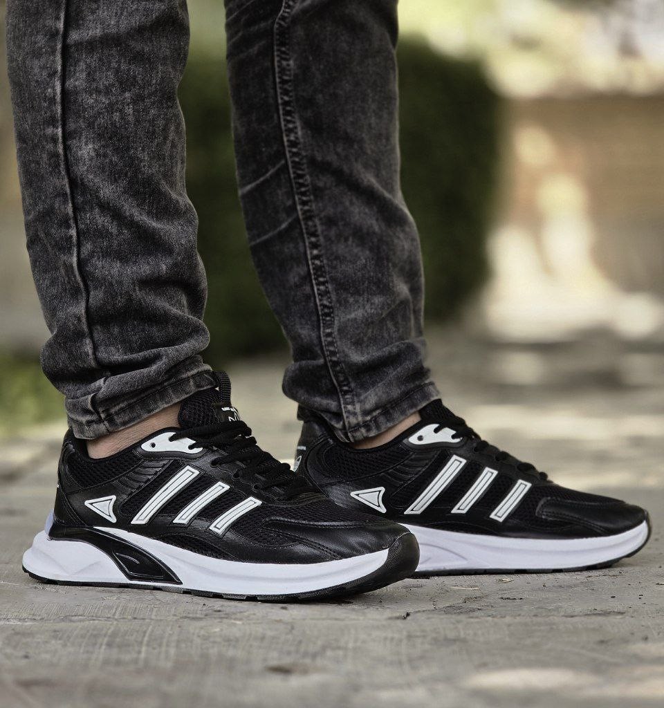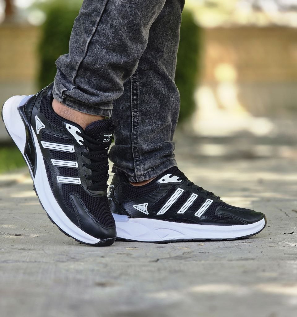 حراج شگفت انگیز کفش اسپرت مردانه پسرانه مدل ادیداس شیک و پرفروش رنگ مشکی سفید ارسال رایگان
