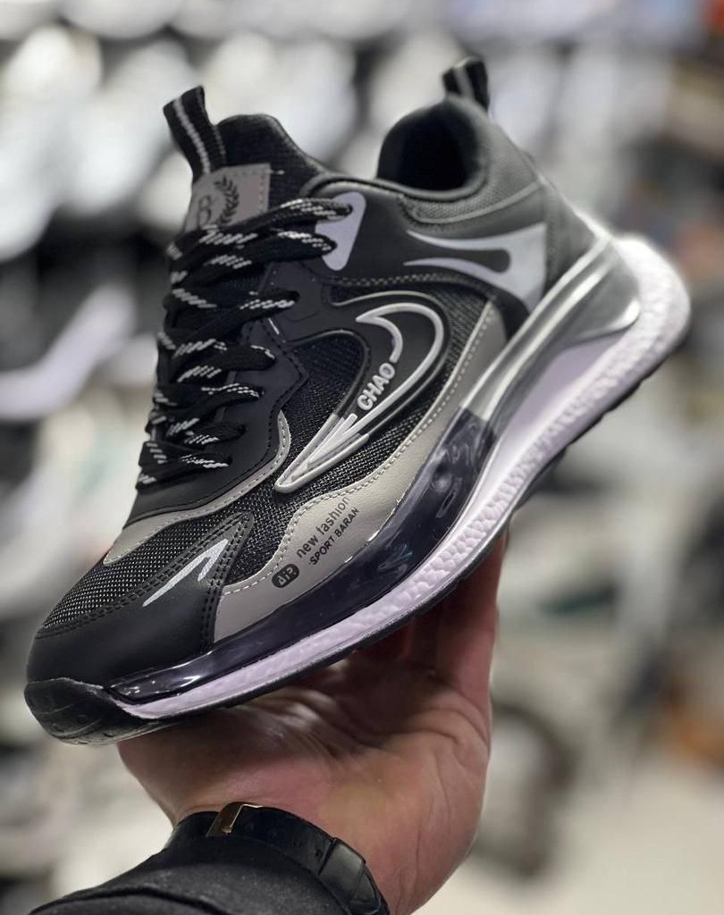فروش بی نظیر کفش اسپرت مردانه پسرانه مدل نایک شیک و باکیفیت رنگ مشکی طوسی زیره سفید باارسال رایگان