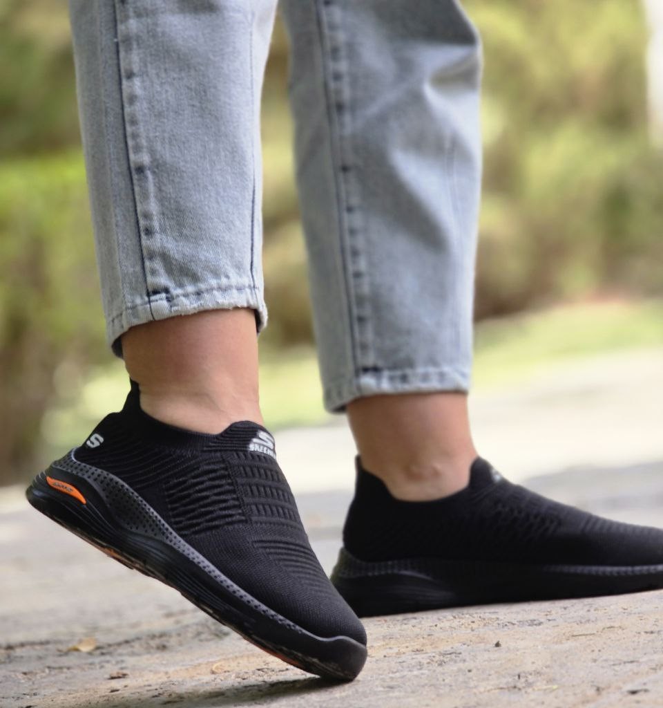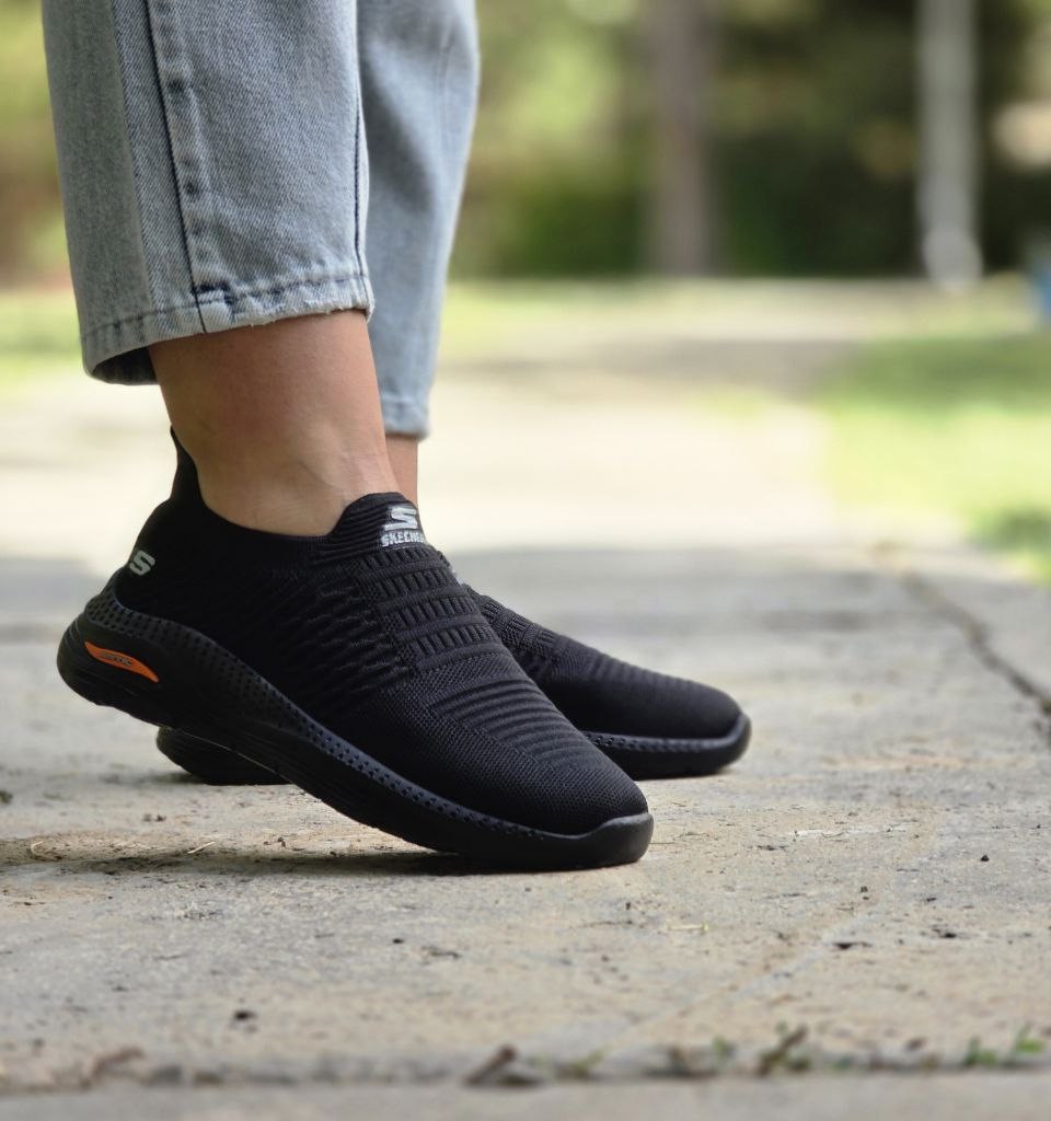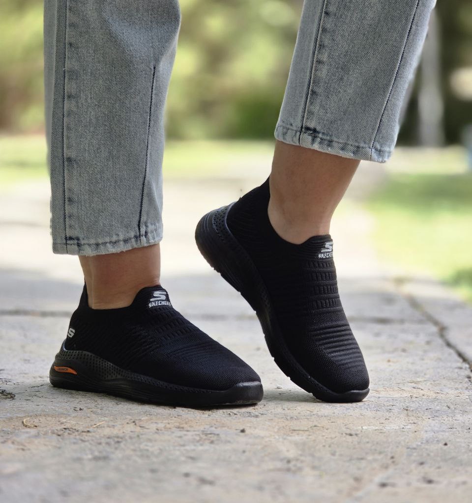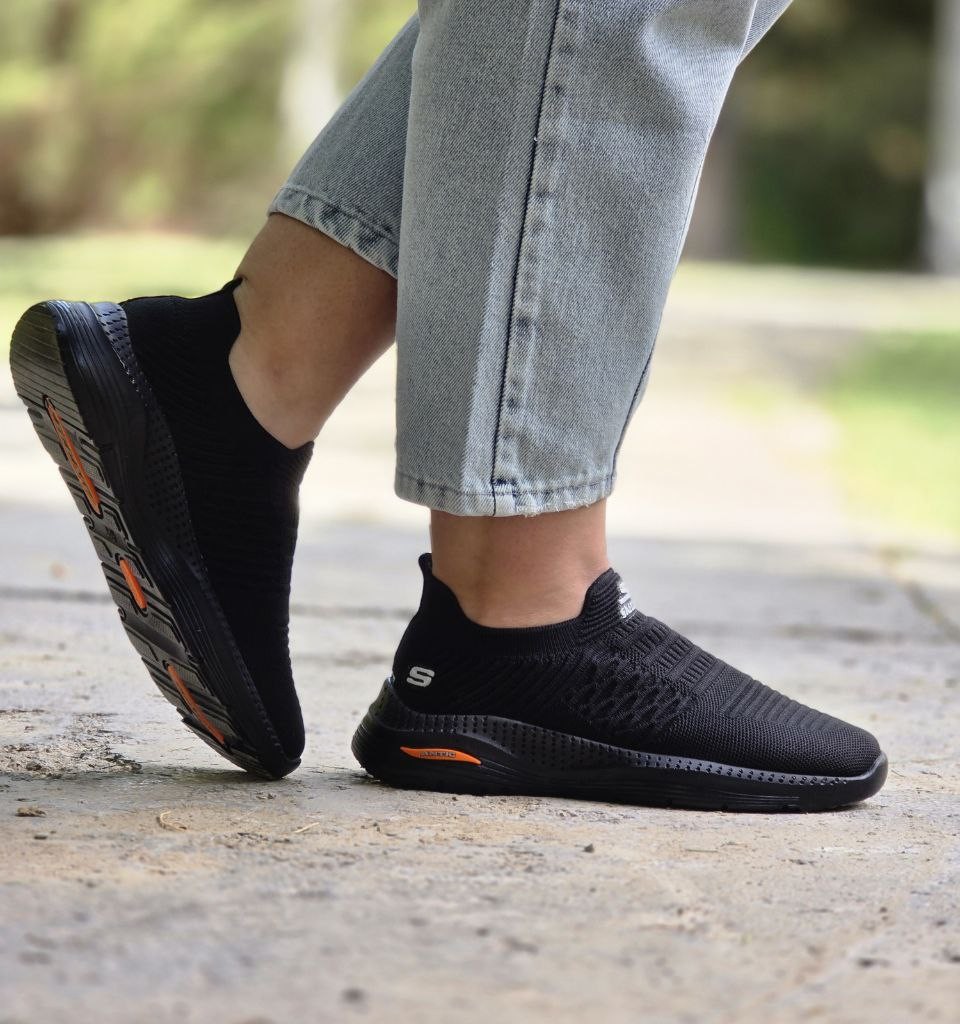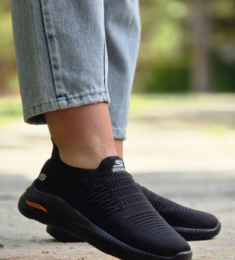 فروش استثنایی کفش اسپرت زنانه و دخترانه جورابی مدل اسکیچرز خاص و مقاوم رنگ مشکی باارسال رایگان