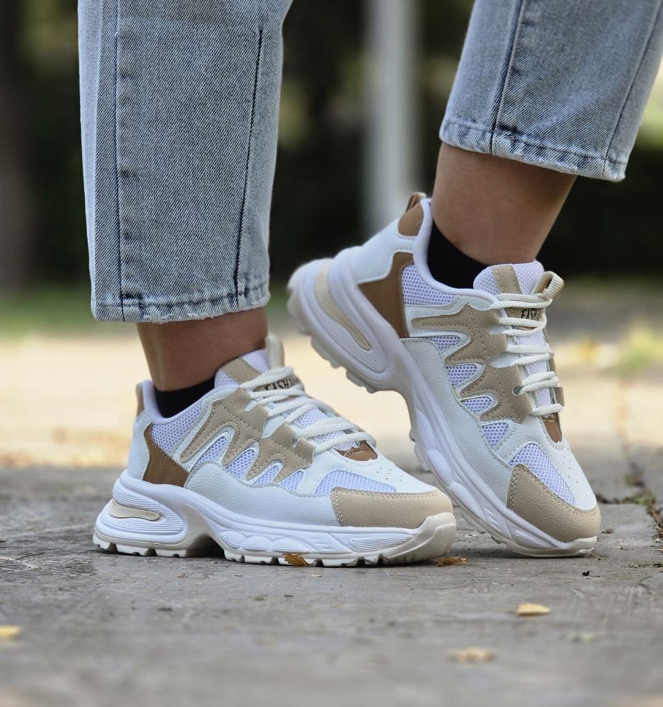 فروش فوق العاده کفش اسپرت زنانه دخترانه مدل فشیون شیک و جذاب رنگ سفید کرم باارسال رایگان